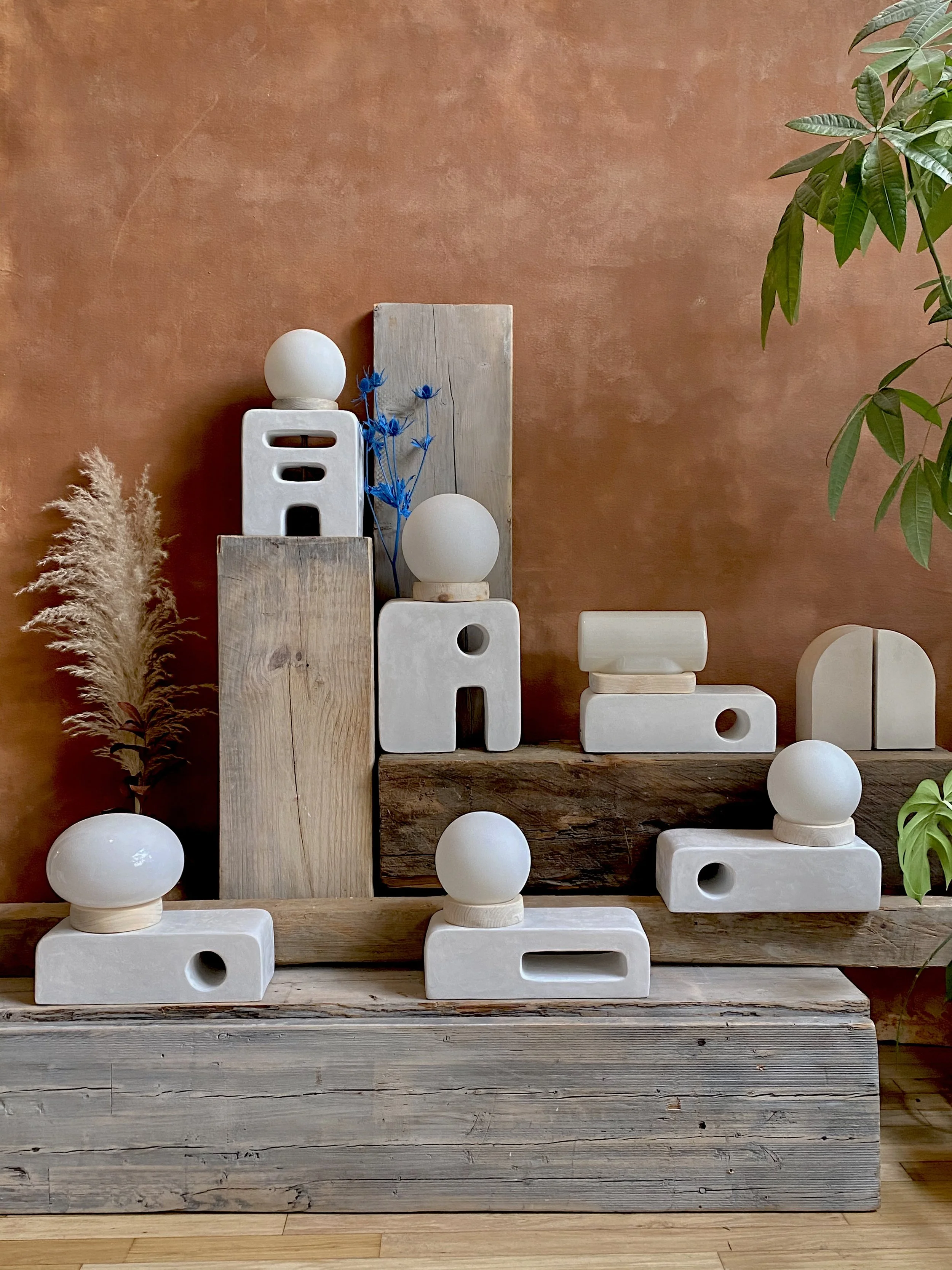 m a t e r i a l s: concrete / plaster/ wood / glass / copper & brass